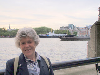 College friend, Maggie, on the South Bank of the River Thames, where we enjoyed walking and talking and eating supper! Thanks, Maggie...